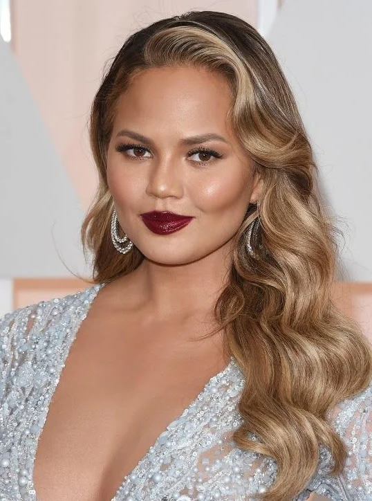 With the Oscars coming up this Sunday, we are bound to see this look as well. The classic soft Old Hollywood waves are perfect for the season and the occasion. (Pictured is Chrissy Teigen at last year's Oscar red carpet)